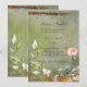 Rustic Green Floral Gold Script Wedding Invitation