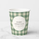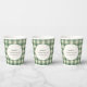 Rustic Christmas paper cups featuring an elegant design the editable greeting "Merry Christmas" along with your family name and the year over a vintage style gingham pattern.