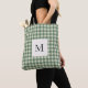Rustic Christmas tote bag featuring an elegant design your monogram over a vintage style gingham pattern.