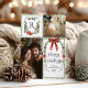 Rustic Green Monogram Bow Merry Christmas 2 Photo Holiday Card