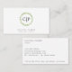 Business card with a rustic wreath comprised of watercolor painted olive leaves with your two letter monogram inside. Below is your name and title in a medium gray font over a white background. The backside has your contact info lined up with the left hand side. This design is great for a skin care expert, makeup artist, massage therapist, yoga instructor, beauty salon and more.