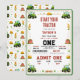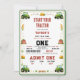Celebrate your little boy's "first year down" with this playful farm-themed design featuring adorable green tractors and rustic red barns. The front showcases a creative event ticket layout complete with a decorative barcode, wheat accents, and hay bales for an authentic country feel. On the reverse side, a matching seamless pattern of farm elements adds a professional and cohesive touch to your celebration. This vibrant illustrative style is perfect for parents hosting a backyard barnyard bash or a tractor-themed first birthday party. Easily update the "seat" and "row" details to make this a truly unique keepsake for your guests.