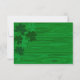 Festive Irish Design: A rich green wood-effect backdrop provides a rustic yet modern base for the deep and lime green clover accents.