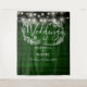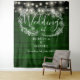 This stylish string lights floral wedding photo booth backdrop can be personalized with your names and special date on a rustic emerald green wood panels background. Designed by Thisisnotme©