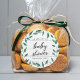 This rustic baby shower sticker features Italian Ruscus with the words "baby shower" in trendy script all against a pale wood background.