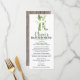 A cross surrounded by beautiful greenery leafs adorns a modern 3-course menu, with choice of entree and dessert. A rustic menu with a faux wood paneling on the back, perfect to set down on the tables before guests flip them around to reveal the nights' courses. Available on a traditional 4"x9" elegant card.