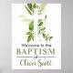 The is the perfect welcome poster for your little ones baptism, christening or communion. Adorned with a large white cross surrounded by green leaf blooms. Great to use to welcome guests at the event either framed or set on a wall.