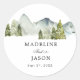 Rustic Greenery Forest Mountains Script Wedding Classic Round Sticker