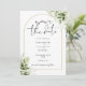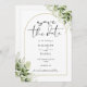 This elegant botanical greenery leaves gold arch save the date invitation can be personalized with your information in chic typography with your wedding website QR code and details on the reverse. Designed by Thisisnotme©