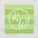 A timeless white and green Rustic Greenery design makes this wedding registry card a beautiful addition to your wedding invitation suite. Crisp white text on a background of Greenery is a classic choice for spring, summer or even a fall wedding. Personalize the front of this square registry card with your names and the stores where thoughtful wedding guests will find perfect gifts for your perfect day. The back features the double bride and groom's monogram encircled with my double vine branch wreath that is the signature of this wedding set. The subtle stripes background can be removed if you prefer a solid shade of green - just pick the option to further customize and personalize this item. From a rustic spring wedding, a romantic summer wedding or a fall country woodland destination wedding, this wedding registry card in soothing shades of Greenery and white will fit into your celebration. Browse my store to see mix and match options in my Woodsy Elegance category.