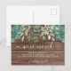 It is decorated with watercolor foliage in shades of green and a barn wood background.