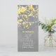 Rustic woodland or garden yellow and grey wedding programs with tree branches and string lights