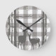 Rustic Grey Buffalo Plaid Checkers Deer & Birch Round Clock