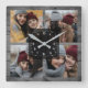 Rustic Grey Wood 4 Pictures Family Photo Collage Square Wall Clock