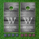 Easily personalize this rustic wood styled cornhole set with your custom family name, monogram and established date.