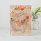 Rustic Grunge Orange Floral Fall Wreath Happy Thanksgiving Holiday Card.