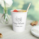 Rustic Fall Halloween Party Paper Cup, with a simple pumpkin on a white background. With customizable typography lettering, you add your own text. A fun addition to your autumn holiday party and entertaining.