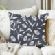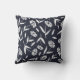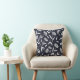 Rustic Hand Drawn Flowers Navy Blue Throw Pillow