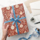 Infuse your gift wrapping with the warmth of a handmade holiday. This design features softly painted vintage-style ornaments nestled among simple winter foliage, all set against a rich rust-toned backdrop. The muted cream tones and flowing lines evoke the charm of traditional crafts and timeworn heirlooms. A perfect choice for those who love a nostalgic touch, and a natural, down-to-earth aesthetic during the festive season.