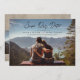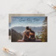 Rustic handwritten style font Save the Date, hand script design with elegant text above free space on engagement photo. Text can be moved and font colors can be changed with further customization. Back of this photo frame with rustic barn wood and plenty of space for extra text or additional photos.