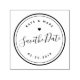 Custom-designed wedding save the date stamp featuring modern hand script with personalized couple names and date.