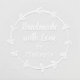 A charming leafy vine wreath frames flowing script "Handmade with Love by" and the maker's name in this rustic handmade business embosser. Personalize with your name for a sweet branded seal perfect for makers, crafters, etsy sellers, and small business owners. A beautiful finishing touch for handmade goods, packaging, gift tags, and product labels.
