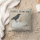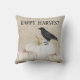 A rustic autumn pillow featuring neutral white pumpkins, a black crow, and “Happy Harvest” text on a burlap-style background. A cozy farmhouse accent for living rooms, entryway benches, or seasonal décor — perfect for autumn decorating from fall gatherings through Thanksgiving.