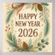 This design fits a new year poster 2026 with its classic wreath around the words.