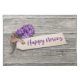Modern Persian New Year illustration: Purple hyacinth with New Year "Happy Norooz" wishes on a rustic wooden background.