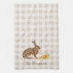 Rustic Hare And Carrots With Name Beige Gingham Kitchen Towel
