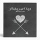 A pretty rustic wedding planner binder with a cute white heart and arrow design on a faux black chalkboard background.
