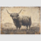This artwork features a rugged Highland cattle with its signature shaggy coat, set against a rustic countryside backdrop. The earthy tones and textured style evoke a timeless, pastoral charm, perfect for farmhouse decor and nature-inspired art lovers.