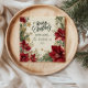Celebrate the season with this striking rustic Christmas design featuring deep red amaryllis blooms, evergreen sprigs, and shimmering golden stars. A warm and festive way to send personalized holiday wishes to loved ones.