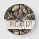 Rustic Holiday Love and Joy Pine Cone Round Clock