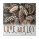 Festive, rustic pine cones accentuate this classic, elegant design wishing holiday Love and Joy.