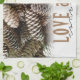 Festive, rustic pine cones accentuate this classic, elegant design wishing holiday Love and Joy.