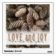 Festive, rustic pine cones accentuate this classic, elegant design wishing holiday Love and Joy.