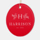 Rustic holiday monogram red newlywed photo ceramic ornament