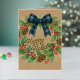 Rustic Holly Wreath Blue Black Checkered Bow Foil Holiday Card