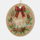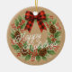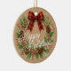 Rustic Holly Wreath Red Black Checkered Bow Ceramic Ornament