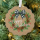 Rustic Holly Wreath White Black Checkered Bow Ornament Card
