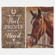 Rustic equestrian memorial fleecy blanket featuring a treasured photo of your beloved horse, a stable hay background, a horseshoe, heart, a sweet horse remembrance quote that reads "you left your hoof prints forever on my heart", plus their name, and dates.
