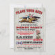 Awesome Horse Racing Derby party invitation done in an old poster style. Features an old illustration of a race horses and jockeys, bow tie and a Victorian lady in a fancy big hat with fun typography against faux barn wood background.