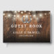 This rustic wedding guest book, featuring string lights and horseshoes one a barn wood background, can be personalized with your information in stylish typography. Designed by Thisisnotme©