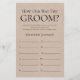 This lovely rustic How Old Was The Groom? bridal shower game sheet is simple and charming - perfect for any shower. This fun and easy game is sure to bring lots of laughter to any shower! Have family and friends send you pictures of the groom at different ages and have them printed. Number them and set them near these game sheets. Simply give a sheet to each guest (don't forget the pens) and let the competition begin! You'll be amazed at how many people really know the ages of the groom. In seconds you can see how your game sheet will look. Simply select Personalize this Template and type in the groom's name.