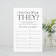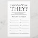 This lovely How Old Were They? bridal shower game sheet is simple and charming - perfect for any shower celebrating 2 grooms. This fun and easy game is sure to bring lots of laughter to any shower! Have family and friends send you pictures of the grooms at different ages and have them printed. Number them and set them near these game sheets. Simply give a sheet to each guest (don't forget the pens) and let the competition begin! You'll be amazed at how many people really know the ages of the grooms. In seconds you can see how your game sheet will look. Simply select Personalize this Template and type in the grooms' names.