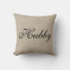 This rustic, burlap colored cushion is decorated with fancy script that says "Hubby" on the front, and "Mr." on the back, making it perfect for the sweetheart table, sofa or bed of the newlyweds. Scroll down to see the coordinating Wifey / Mrs. cushion.