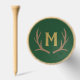 Rustic golf tee with your monogram in an antler themed design on hunter's green.
