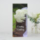 Give your guests the order of your rural farm or ranch theme marriage ceremony with the casual yet classy Rustic Hydrangea and Cowboy Boots Country Wedding Program. This informal and elegant custom western style nuptial timeline program features a quaint floral photograph of brown leather cowboy boots filled with a bouquet of white hydrangea flower blossoms and white bridal veil on barn wood with a wagon wheel and blurred green natural background.