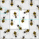A pattern of yellow and black striped, illustrated, rustic bees swarm across this fabric.